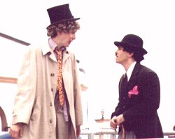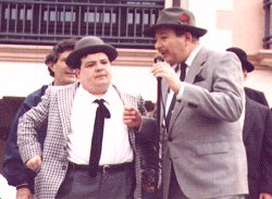 (Right: Abbott and Costello give the parade crowd a teaser for the afternoon's comedy show by performing a short excerpt from the classic bit, "Who's on First?") This year's festivities concluded with a comedy show on the Music Pier, featuring many of the celebrity impersonators who had appeared in the parade. The show was emceed by George Benson as W.C. Fields, and featured Bud Palmer and Lou Sciara as Abbott and Costello, Holly Ferris as Mae West and Carmen Miranda, and Ron MacCloskey filling in for Groucho. And while these impersonators were much more convincing to the eyes than the ears, the show was still entertaining (on several levels). The highlight of the show was Palmer and Sciara doing several classic Abbott and Costello routines; of all the acts, this was by far the most convincing.